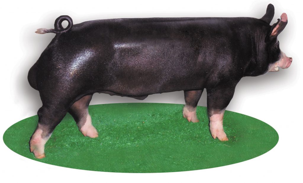 This black animal with the white belt is know universally as “The Mark of a Meat Hog.” Their ability to sire winning carcasses is unequalled and they continue to set the standard, by which all other terminal sires are evaluated.