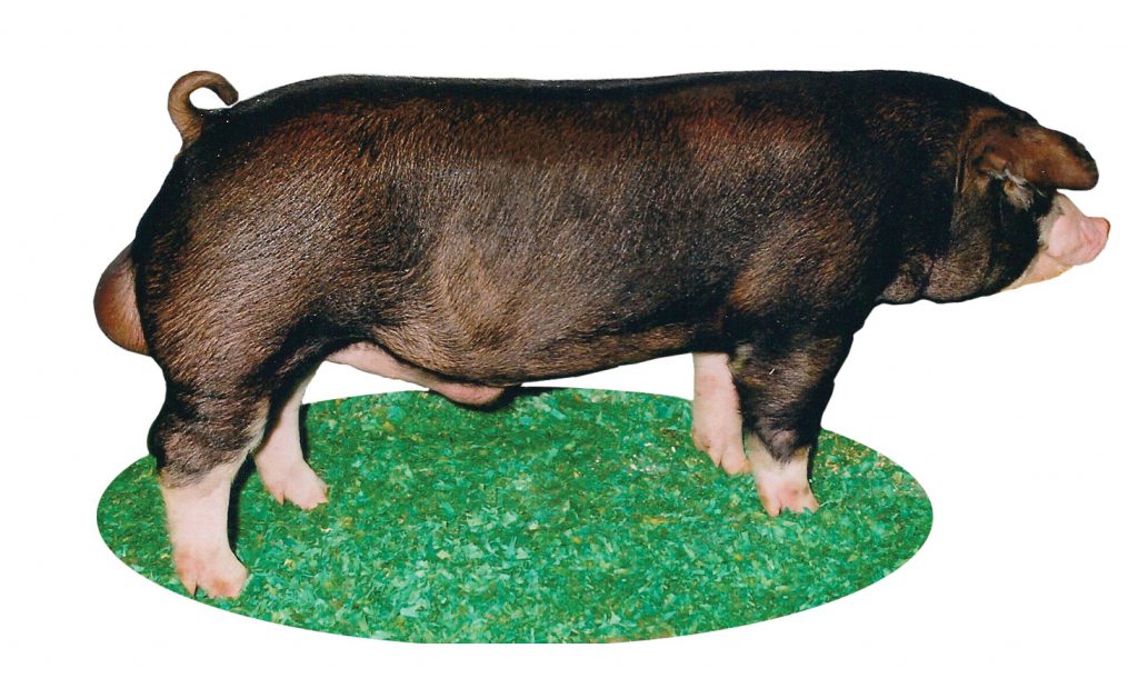 The red breed of hogs known as Duroc is a major contributor to almost every successful hog operation. This breed has long been known for its ability to grow faster on less feed. The Duroc’s ability to display a rapid growth rate, coinciding with efficient conversion of pound of feed to pounds of red meat, is unequaled by any other breed. Through the use of purebred Duroc boars in commercial operations, the producer can maximize the heterosis that is generated by crossbreeding pure genetic lines. Duroc’s skeletal structure, which stands up in all kinds of environments, combined with natural leanness, produce a fast growing, efficient product that is acceptable to the packer and the consumer. This ensures that the Duroc breed will continue to play an integral part in the production of pork for discriminating Americans.